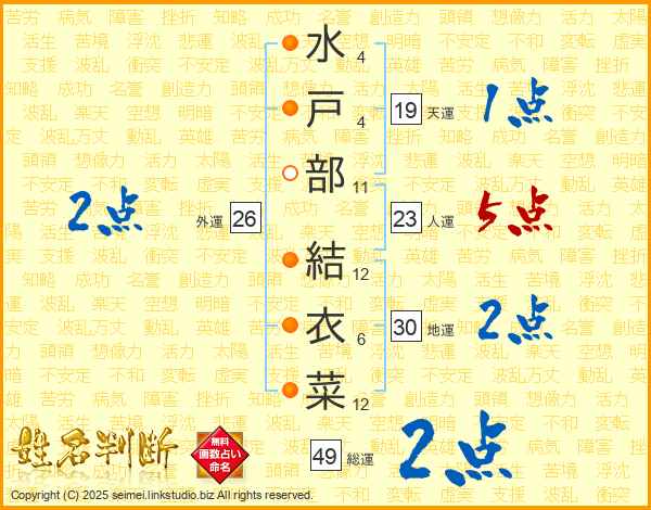 水戸部結衣菜さんの総運は49画の2点!