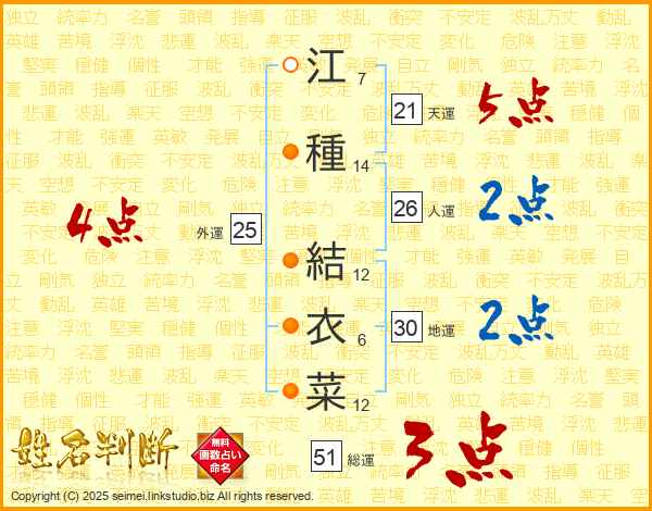 江種結衣菜さんの総運は51画の3点!