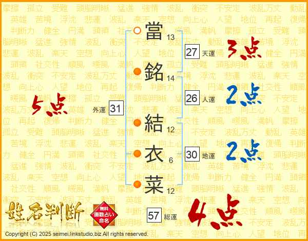當(13画)銘(14画) 結(12画)衣(6画)菜(12画)