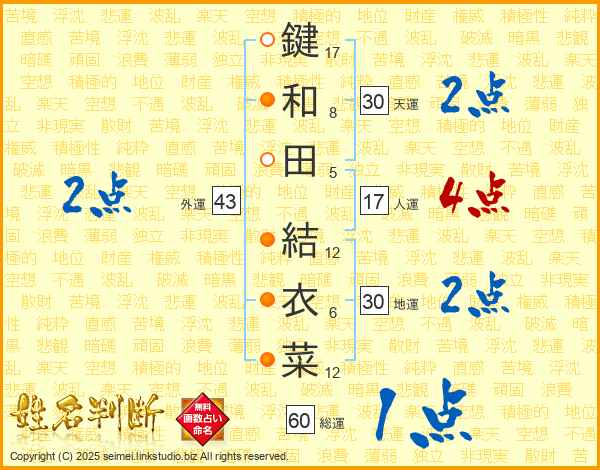 鍵和田結衣菜さんの天運は30画の2点!