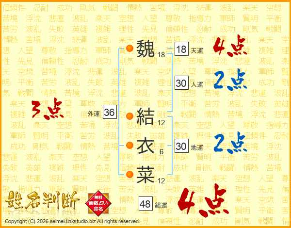 魏結衣菜さんの総運は48画の4点!