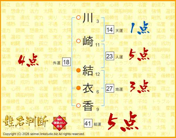 川崎結衣香さんの総運は41画の5点!