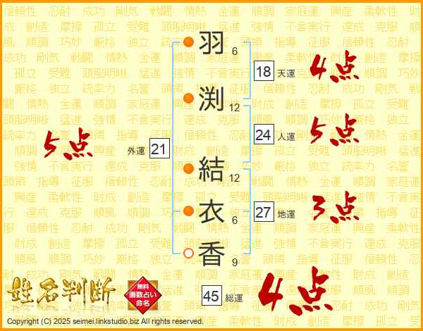 羽渕結衣香さんの総運は45画の4点!