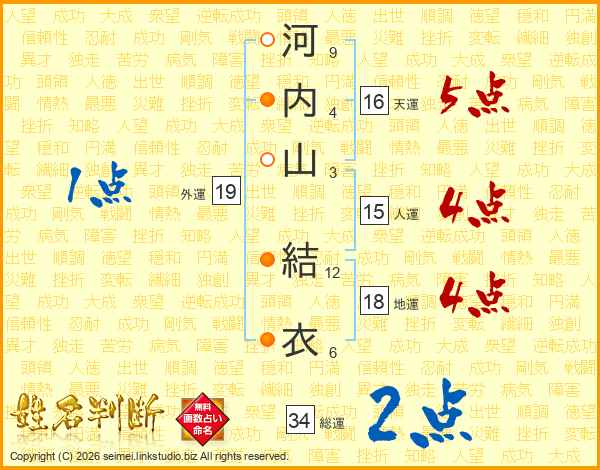 河内山結衣さんの総運は34画の2点!