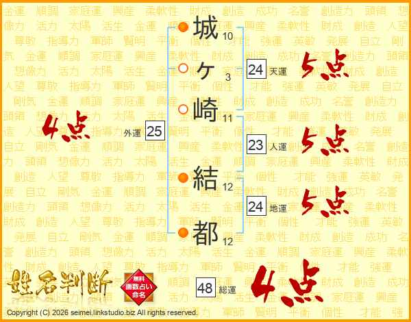 城ヶ崎結都さんの総運は48画の4点!