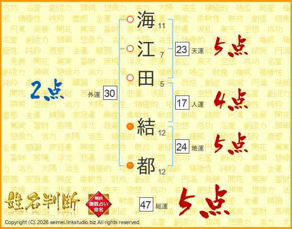海江田結都さんの総運は47画の5点!