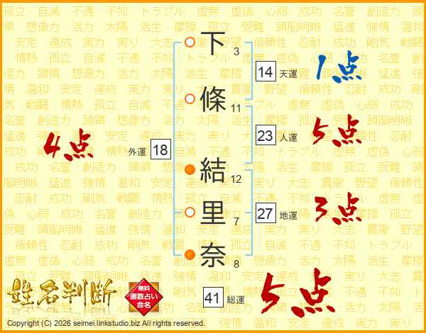 下條結里奈さんの外運は18画の4点!