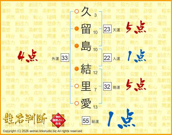 久留島結里愛さんの外運は33画の4点!