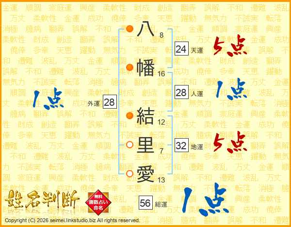 八幡結里愛さんの総運は56画の1点!