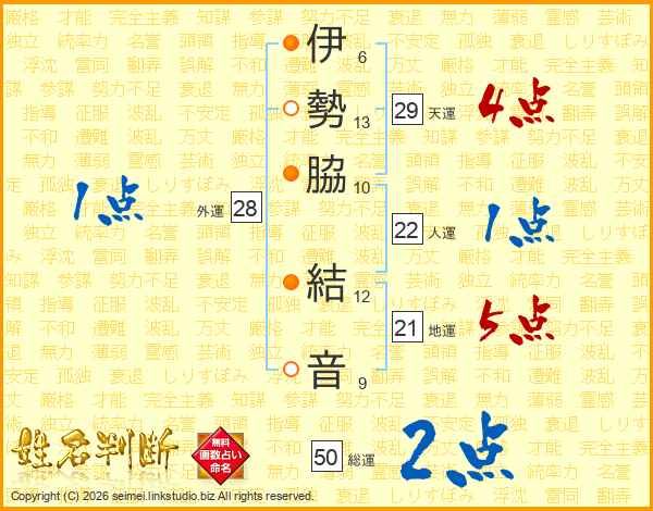 伊勢脇結音さんの総運は50画の2点!