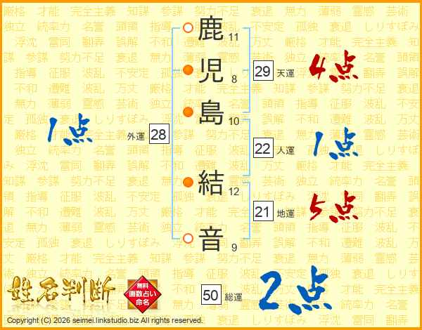 鹿児島結音さんの総運は50画の2点!