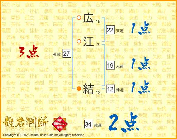 広(15画)江(7画) 結(12画)