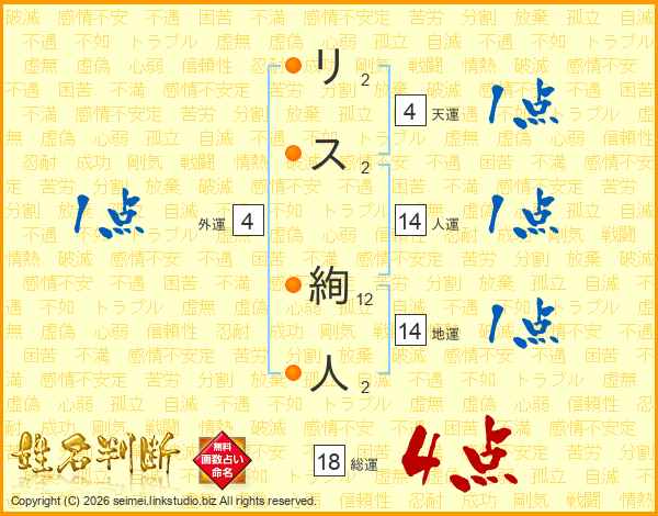 リ(2画)ス(2画) 絢(12画)人(2画)