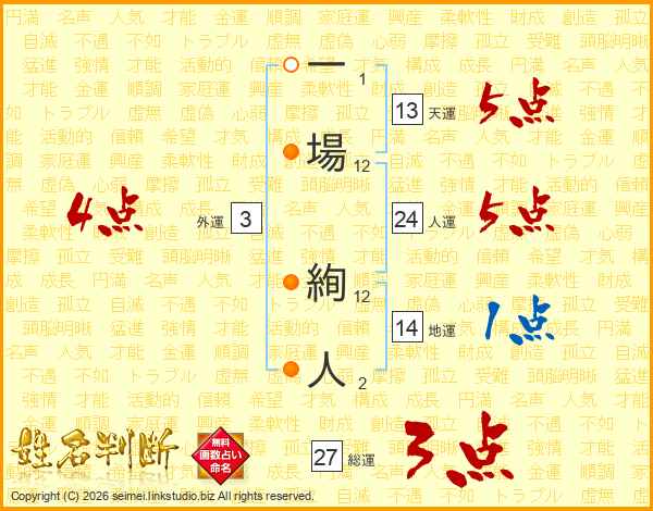一場絢人さんの天運は13画の5点!