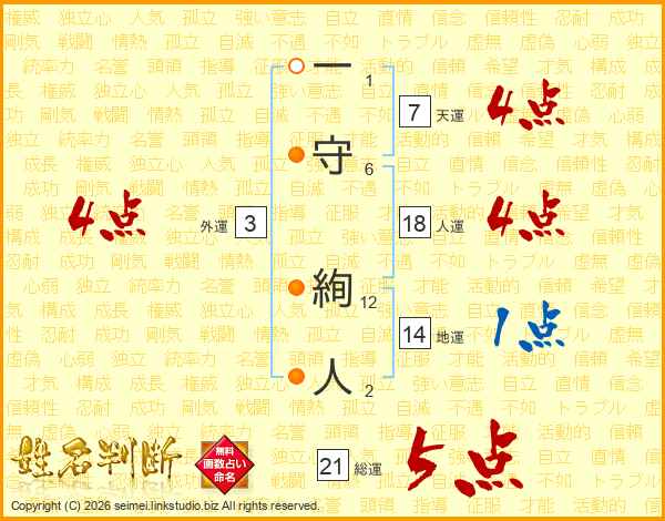 一守絢人さんの総運は21画の5点!