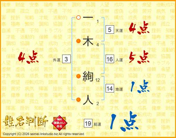 一木絢人さんの総運は19画の1点!