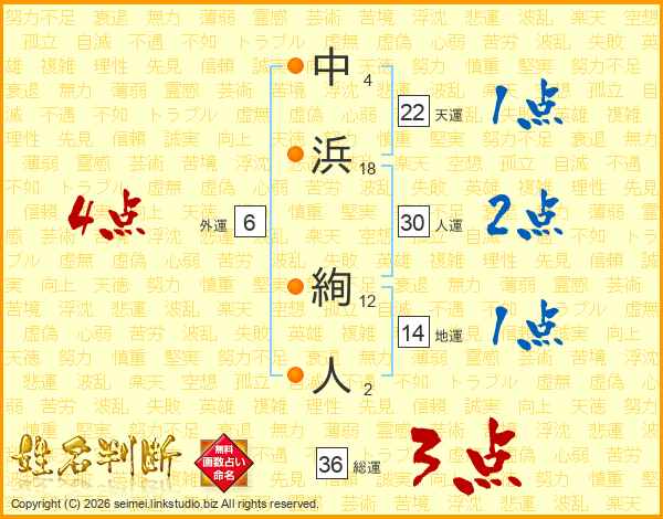 中浜絢人さんの総運は36画の3点!