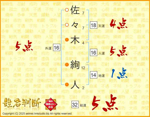 佐(7画)々(7画)木(4画) 絢(12画)人(2画)