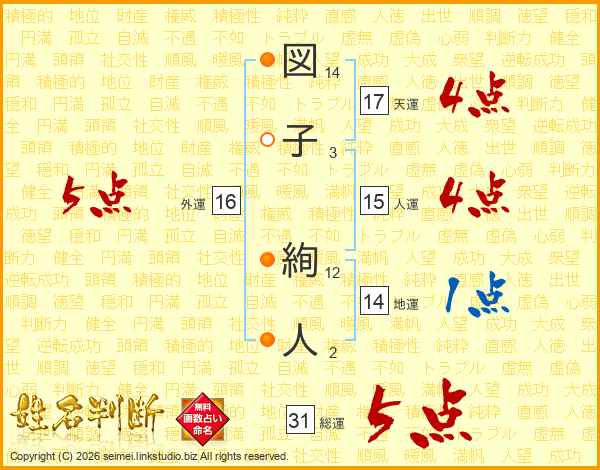 図(14画)子(3画) 絢(12画)人(2画)