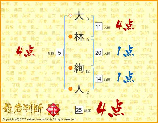 大林絢人さんの人運は20画の1点!