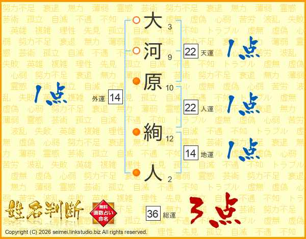 大河原絢人さんの天運は22画の1点!