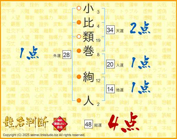 小(3画)比(4画)類(19画)巻(8画) 絢(12画)人(2画)