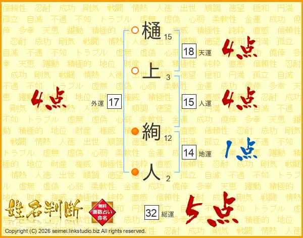 樋上絢人さんの人運は15画の4点!