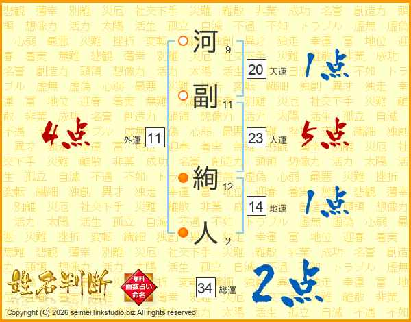 河副絢人さんの人運は23画の5点!