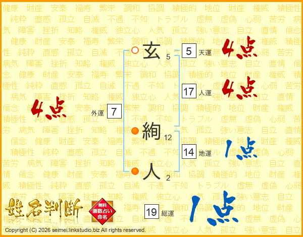 玄絢人さんの人運は17画の4点!