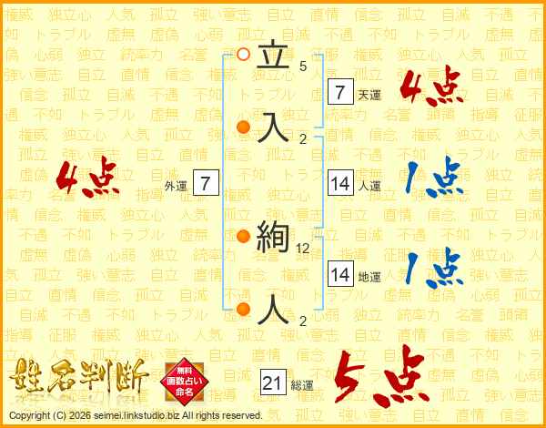 立入絢人さんの総運は21画の5点!