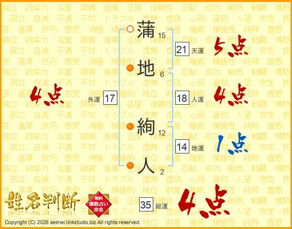 蒲地絢人さんの総運は35画の4点!