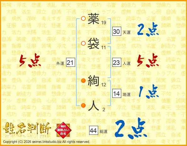 薬袋絢人さんの外運は21画の5点!
