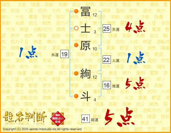 冨(12画)士(3画)原(10画) 絢(12画)斗(4画)
