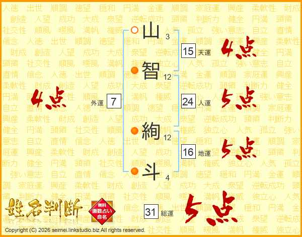 山(3画)智(12画) 絢(12画)斗(4画)