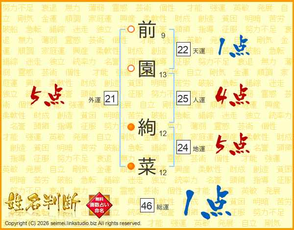 前園絢菜さんの総運は46画の1点!