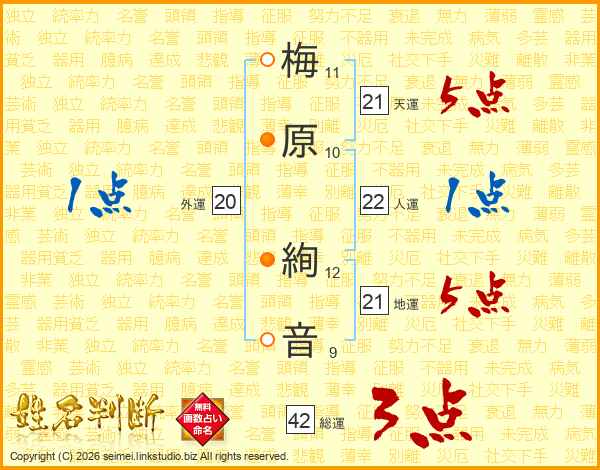 梅原絢音さんの天運は21画の5点!