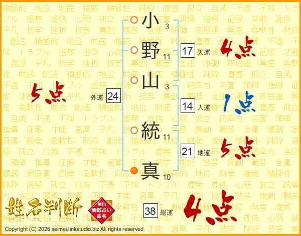 小(3画)野(11画)山(3画) 統(11画)真(10画)