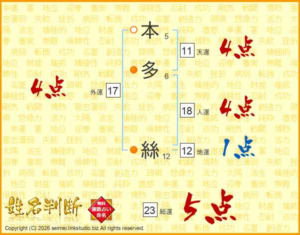 本多絲さんの天運は11画の4点!