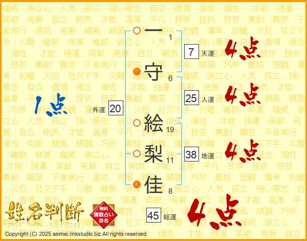 一守絵梨佳さんの総運は45画の4点!
