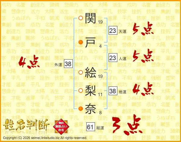 関戸絵梨奈さんの外運は38画の4点!