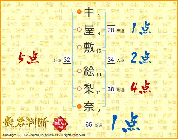 中屋敷絵梨奈さんの外運は32画の5点