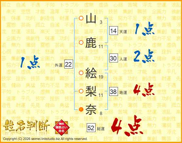 山鹿絵梨奈さんの総運は52画の4点!