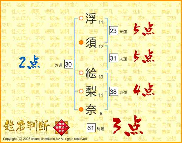 浮須絵梨奈さんの総運は61画の3点!