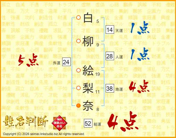 白柳絵梨奈さんの総運は52画の4点!