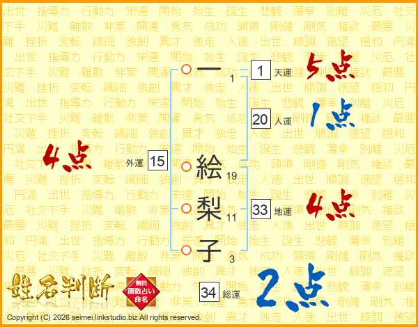 一絵梨子さんの外運は15画の4点!