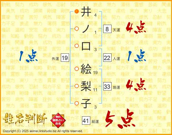 井(4画)ノ(1画)口(3画) 絵(19画)梨(11画)子(3画)