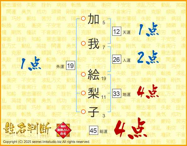 加我絵梨子さんの総運は45画の4点!