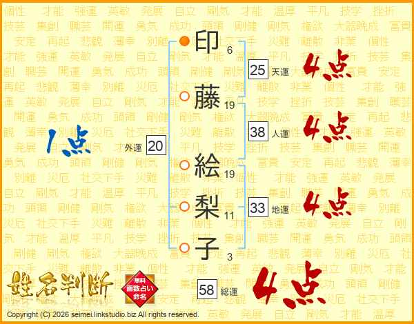 印藤絵梨子さんの総運は58画の4点!