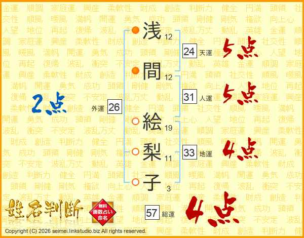浅間絵梨子さんの外運は26画の2点!