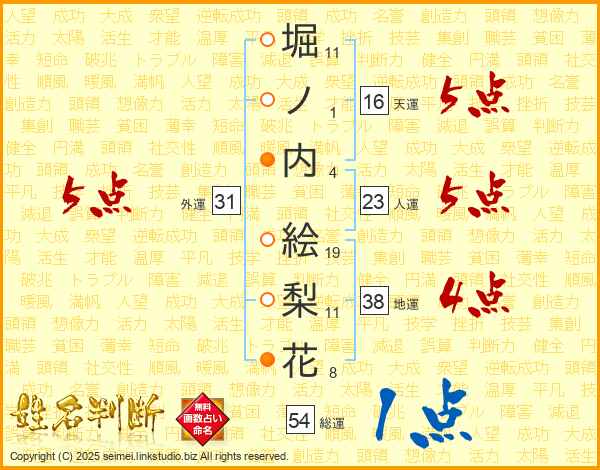 堀ノ内絵梨花さんの外運は31画の5点!